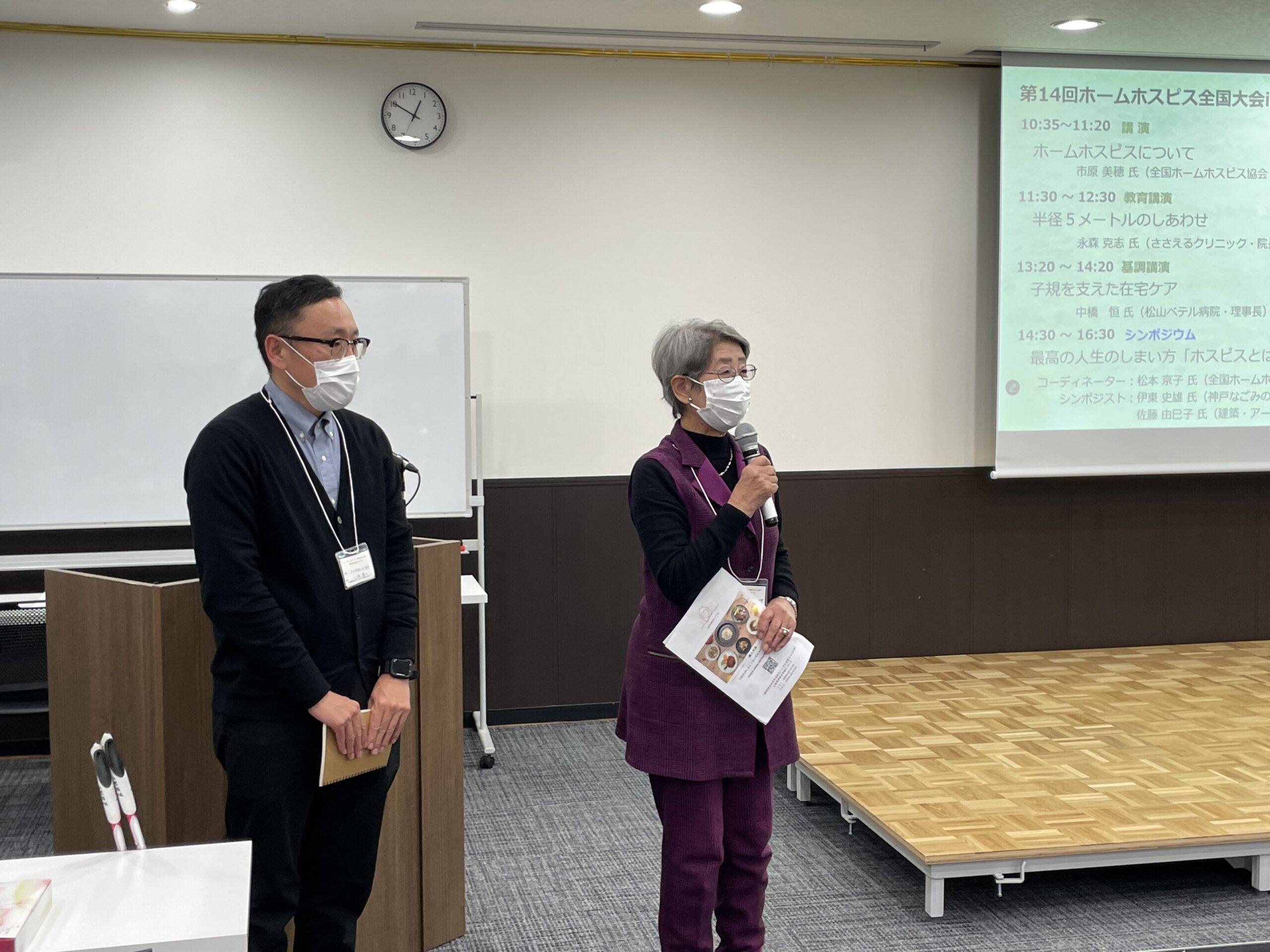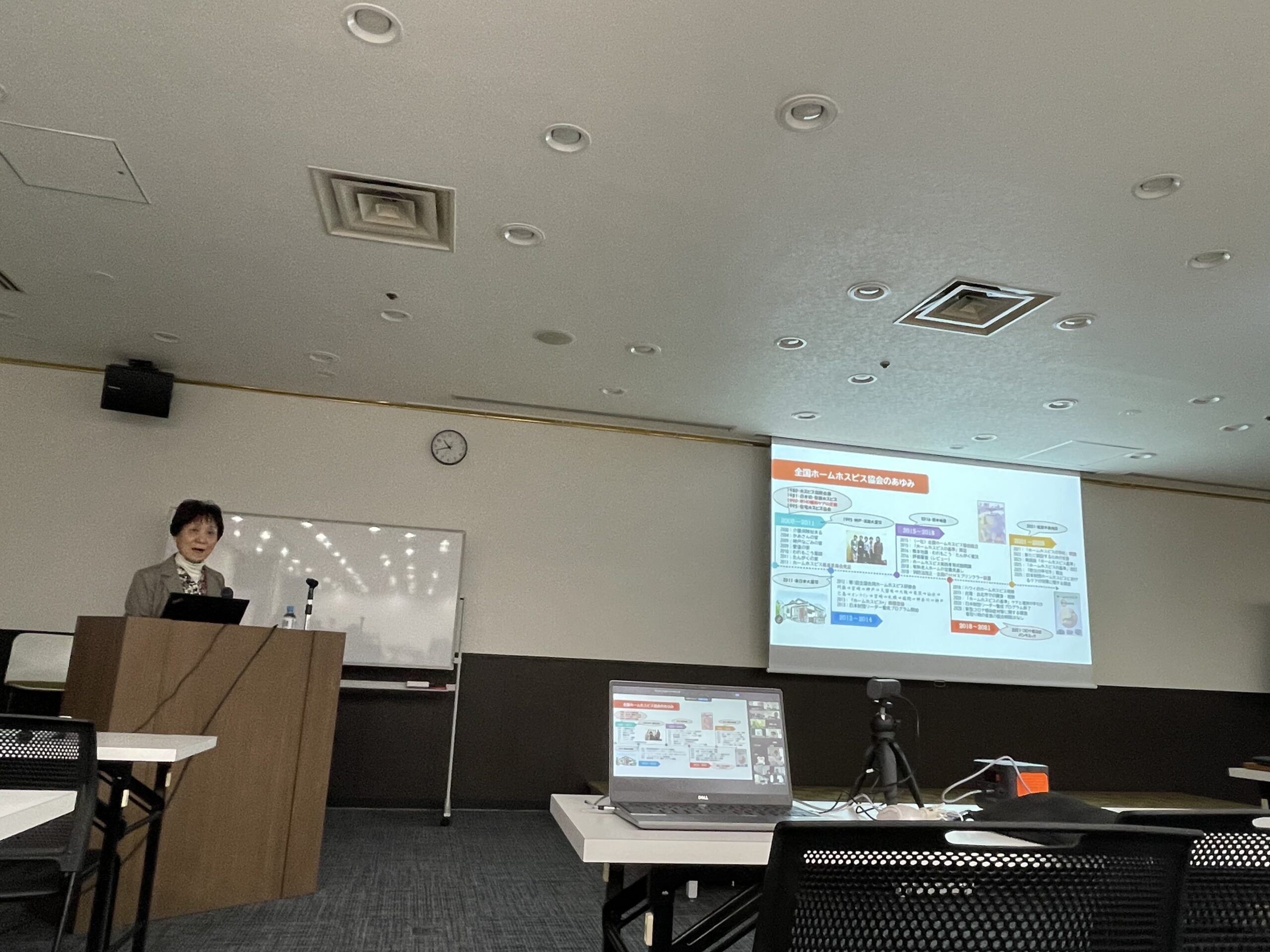 内容:「ホームホスピス」について講演させていただきました。ホームホスピスの基本理念や基準といった項目、日本財団様のホームホスピスにおけるケアの効果に関する調査について、「これからのホームホスピスの可能性」について